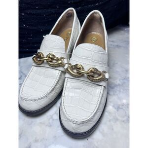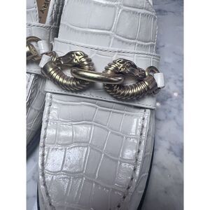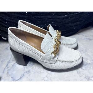 Tory Burch Jessa White Croc Embossed Leather Brass hardware Heeled Pumps EUC 6.5