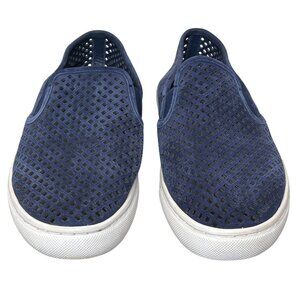 Tory Burch Jesse Perforated Suede Navy Blue Slip-On Sneakers Size 7