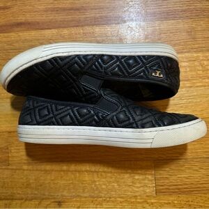 Tory Burch Jesse Quilted Slip-on Black Leather Sneaker Size 7.5 Loafer Flats