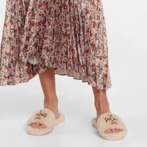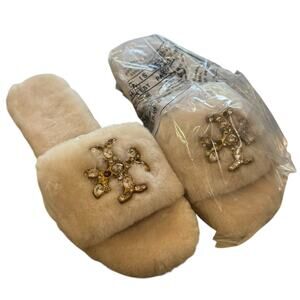 Tory Burch Jeweled Double T Shearling Fur Slide sandals NEW Size 8