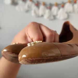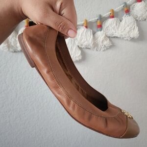 Tory Burch Jolie Leather Slip On Ballerina Flat Tan Brown Logo Casual 7