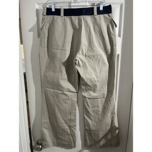 Tory Burch Joss Safari Khaki Pants Blue Cow Leather Sz 10