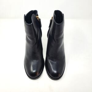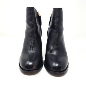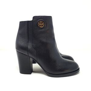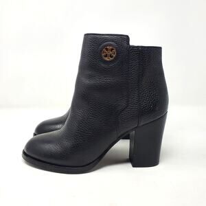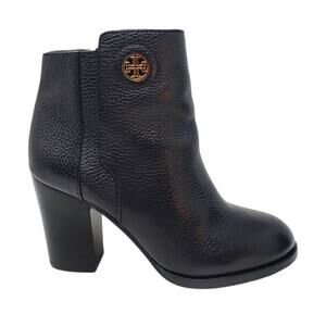 Tory Burch Junction Ankle Heel Boots Zip Moto Pebbled Leather Black Size 7