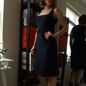 Kari dress is semi-fitted and softly tailored, with a slim bodice, a smooth neckline and a pencil skirt. Curved seamlines and hand-knitted waistband accented with flowers finish off this flattering wool-blend style — an ideal choice for office-to-evening wear.