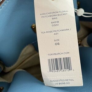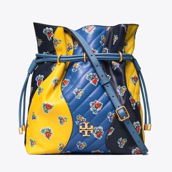 Tory Burch KIRA CHEVRON FLORAL PATCHWORK BUCKET Tea rose bag purse