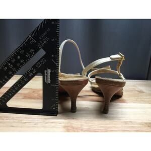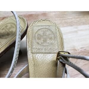 Tory Burch Kailey Bow Kitten Heels Women's 7 Tan Leather Open Toe Slingback