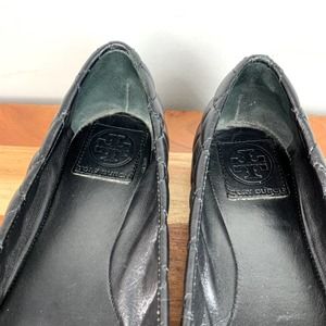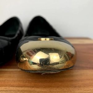 Tory Burch Kaitlin Flats Black Quilted Leather Gold Logo Ballet Shoes size 8.5