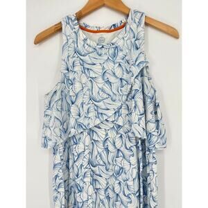 Tory Burch Kaley Dress Ellora Pima Cotton White Blue Shell Nautical Preppy Medium