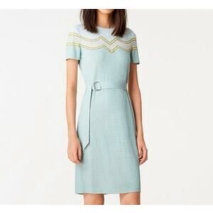 Tory Burch Kari Jersey Dress Size XS Stretchy Belted Green Chevron Geo Print