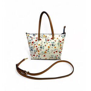 Tory Burch Kerrington Delphi Floral Tote Bag Zip Ivory Shoulder Handbag Purse NW