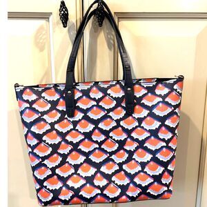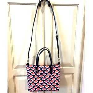 Tory Burch Kerrington Square Fiori Print Tote. The exterior of the bag is in excellent condition. There is some peeling on the handles, the long/adjustable leather shoulder strap is like new. Please see all pictures. Bag measures approx 10" x 11" x 4"