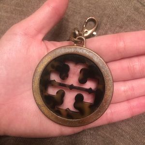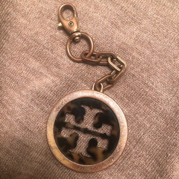 Tortoise and gold Tory Burch keychain. Visible wear on the gold which is shown in the pictures.