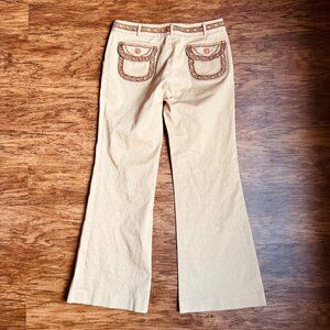 Tory Burch Khaki Orange Embroidered Embellished Flare Leg Pants Size 10
