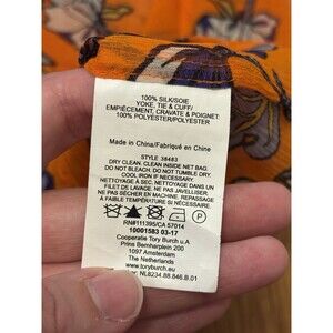 Tory Burch Kia Tie Neck Silk Blouse Orange Long Sleeve Multi Floral Size 6