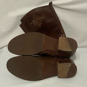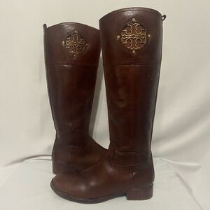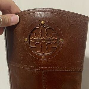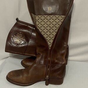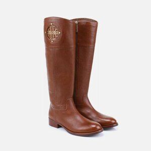 Tory Burch Kiernan 35MM Tumbled Leather Riding Boots Almond Size 6.5 EUC