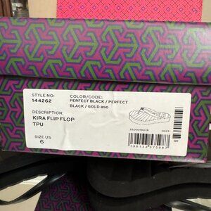 Tory Burch Kira Black Flip Flops w/Gold Double T Logo Size 6 New