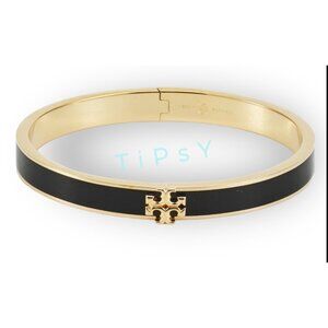 Tory Burch Kira Black & Gold Enamel Logo Hinged Bangle Bracelet