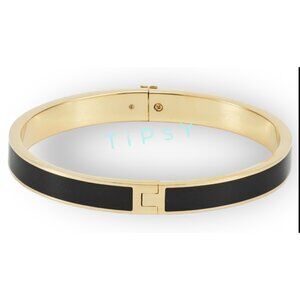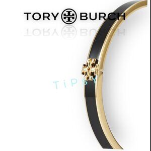 Tory Burch Kira Black & Gold Enamel Logo Hinged Bangle Bracelet