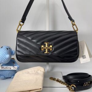 Tory Burch Kira Chevron Flap Shoulder Bag Crossbody Leather 90456 Black Gold NWT