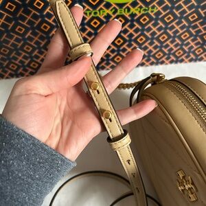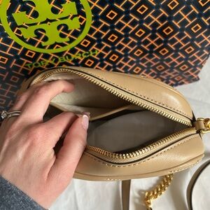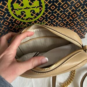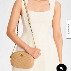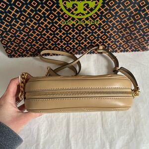 Tory Burch Kira Chevron Quilted Camera Crossbody Bag Desert Dune Gold Tan