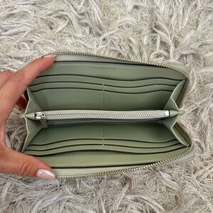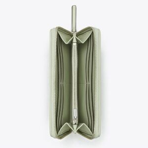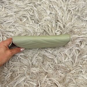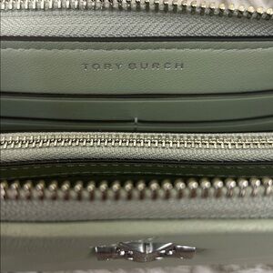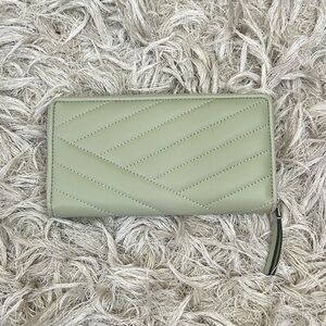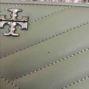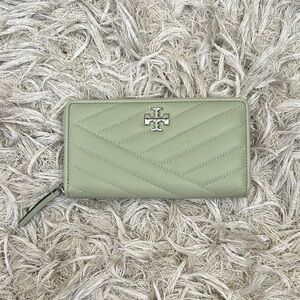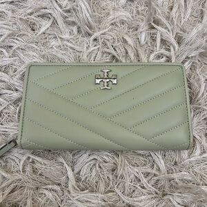 Tory Burch Kira Chevron Quilted Leather Zip Continental Wallet in Pine Frost (pale green). In excellent condition, except for small dot in front; please refer to photos. Retail $248, retired color.