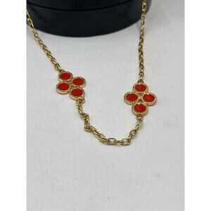 Tory Burch Kira Clover Necklace in gold-tone with red enamel or resin accents