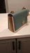 Arctic blue and cream Pebble leather with neutral/light brown suede. heavy duty adjustable from shoulder bag / cross body gold chain with leather strap.Gold hardware. magnetic closure. 3 compartments inside plus- zipper pouch and slot pocket. comes with original dust bag