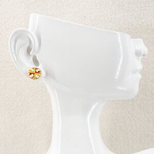 Tory Burch Kira Enamel Circle Stud Earrings Enamel/Titanium Posts/Tory Gold OS