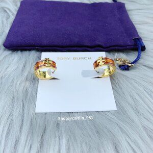 Tory Burch Kira Enamel Huggie Hoop Earring Shiny Hematite