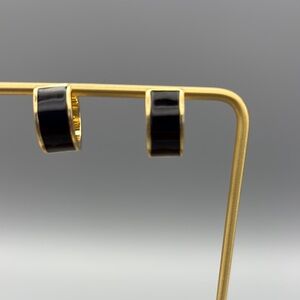 Tory Burch Kira Gold and Black Enamel Hinged Hoop Earrings