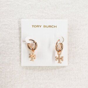 Tory Burch Kira Logo Drop Huggie Hoop Earrings Rose Gold OS