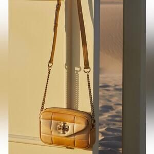 Tory Burch Kira Mini Leather Patchwork Camera Bag GOLDEN STRAW MIX