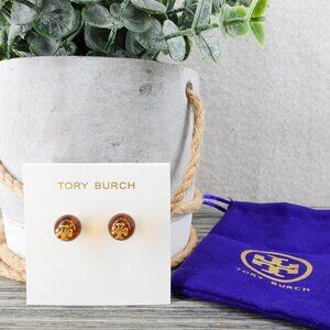 Tory Burch's earrings spotlights the Double T logo adds a signature element to domed resin, these stud earrings are finished with lustrous pearls, for a classic appeal sure to put the perfect finishing touch on your look.