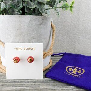 Tory Burch Kira Pearl Stud Earrings Red OS