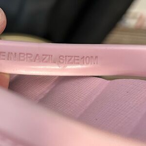 Size 10. Slightly dirty. Stylish pink flip flops by Tory Burch. Perfect for casual wear. Comfortable and chic design.