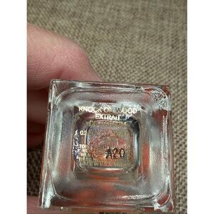 No box. Only tested and left sitting on my dresser! See pictures, bottle is full.