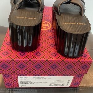 Tory Burch Knotted Scallop Wedge Slide Nappa Leather Size 8