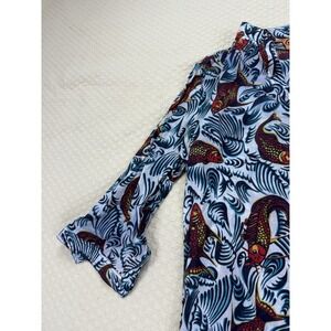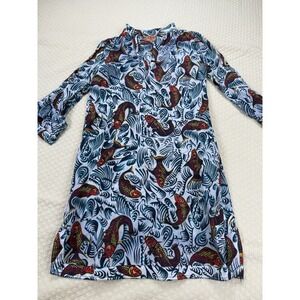 Tory Burch Koi Print Tunic Dress Beach Cover-up Tunic | Blue Red | Womens Size 6