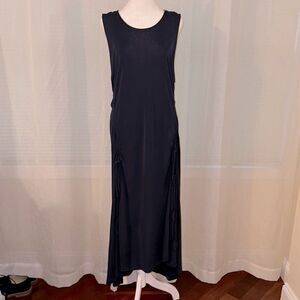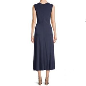 Tory Burch L Shannon Navy Vertical Drawstring Sleeveless High Low Midi Dress