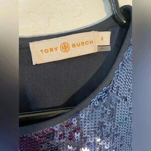 Tory Burch Lantilly Evening Mini Dress Blue Sequin Shift Womens Size 8