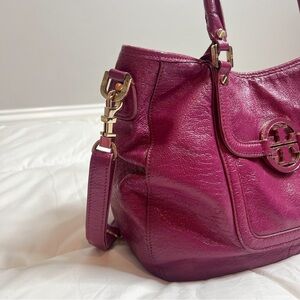 Tory Burch Large Amanda Classic Patent Leather Fuchsia Colored Hobo
