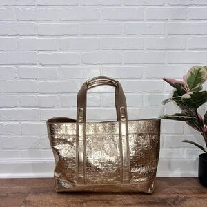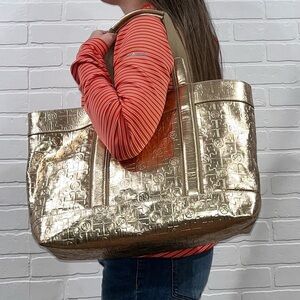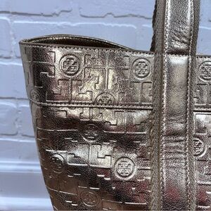 Tory Burch Large Gold Embossed Signature Weekender Tote Bag