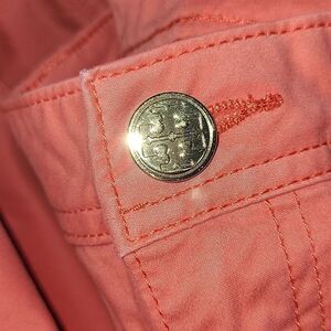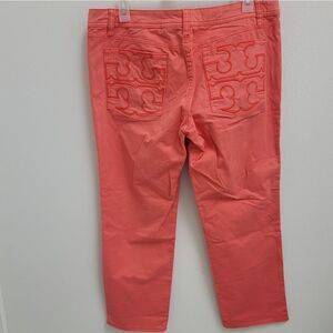 Tory Burch Large Logo Stitch Back Pocket Crop Jeans 31 Orange