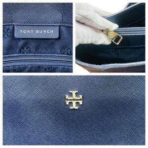 Tory Burch Large Robinson Leather Tote Bag - Navy - 14.5” x 11.25” x 4.5”