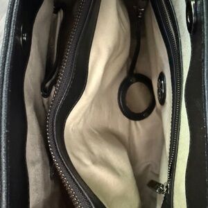 Black hardware gives the classic Saffiano leather a more modern, slightly edgier, and more minimalist appeal than traditional gold-tone or silver-tone. Because the hardware is neutral and monochromatic, it eliminates the need to coordinate it with your jewelry (e.g., deciding whether to wear silver or gold). This makes the bag easier to pair with any outfit or accessory. The black metal hardware transforms the Tory Burch Robinson Large Tote from a classic accessory into a polished, contemporary statement piece that is also highly practical for everyday use. This style was exclusively available at Nordstrom and Tory Burch, making it a rare find.