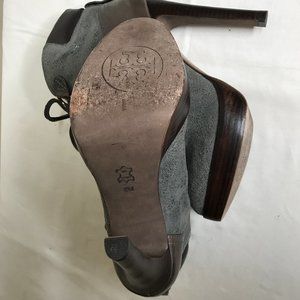 Tory Burch Lawson Platform Stiletto Crackle Suede Lace Up Tie Ankle Boot Sz 8