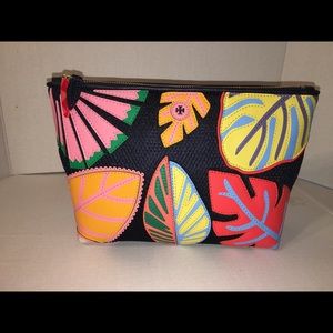 Tory Burch Leaf Appliqué Lrg Trapeze Cosmetic Case