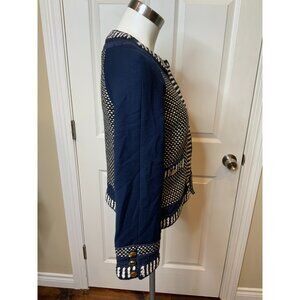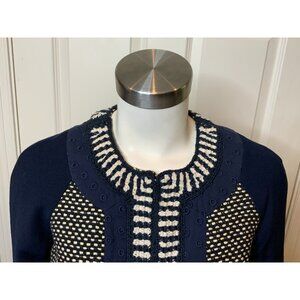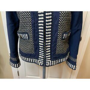 Tory Burch Leandra Navy Blue, White & Metallic Gold Tweed Jacket, Size 4