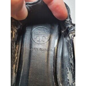 Tory Burch Leather Ballet Flats Women’s Size 7.5 Silver Medallion Black Slip Ons
