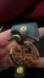 Stylish black leather bracelet featuring a gold logo accent. Snaps allow bracelet to adjust to different wrist sizes. Perfect condition.